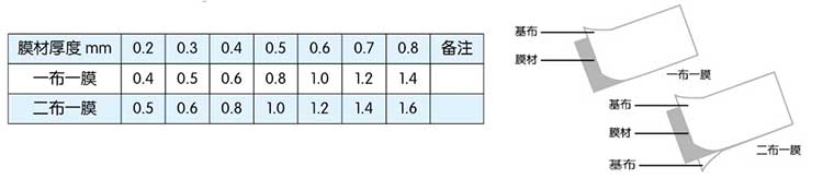 膜材度(mm) | 0.25-0.35 | 0.3-0.5 | ||||||